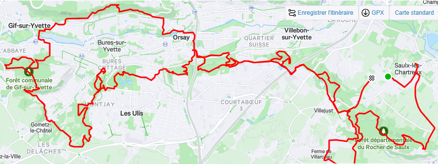 Deux groupes ce matin, 4 Vaillants (retardataire que j’étais, j’ai pris le premier groupe que j’ai retrouvé dans le bois de Saulx) et 11 repartis en deux gruppettos pour affronter les 48km et les 1300D+. Le profil pour cette distance :