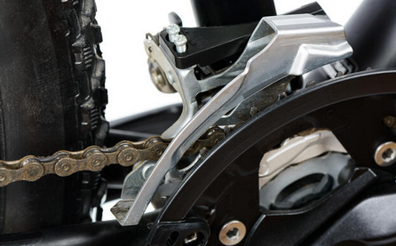 un atelier programmé trois quart d’heure avant le départ pour remettre en service le VTTspé, transmission avant.